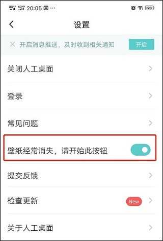 由于部分机型在清理后台应用时会将人工桌面的壁纸进程一并清除,导致壁纸失效。您可以开启设置中的此开关,隐藏软件进程以免被误杀