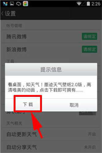 3、点击天气壁纸”选项,并按提示下载安装所需功能插件。