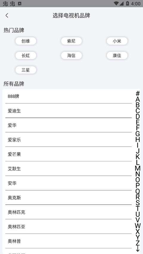 控制电视的操作逻辑与空调类似:在首页选择电视”设备类型,然后从品牌列表中找到你家电视对应的品牌。