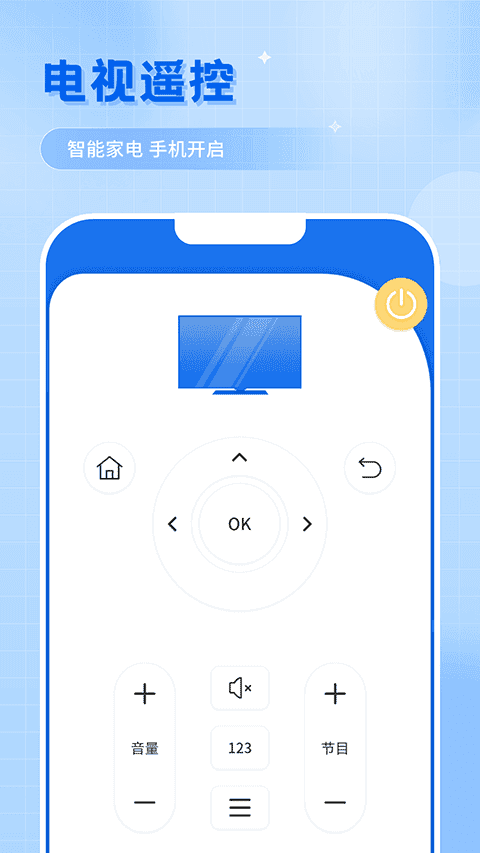 完成品牌匹配后,界面将自动生成虚拟遥控面板,点击电源键即可实现开关机,音量、频道、输入源等常用功能一应俱全,操作流畅直观。