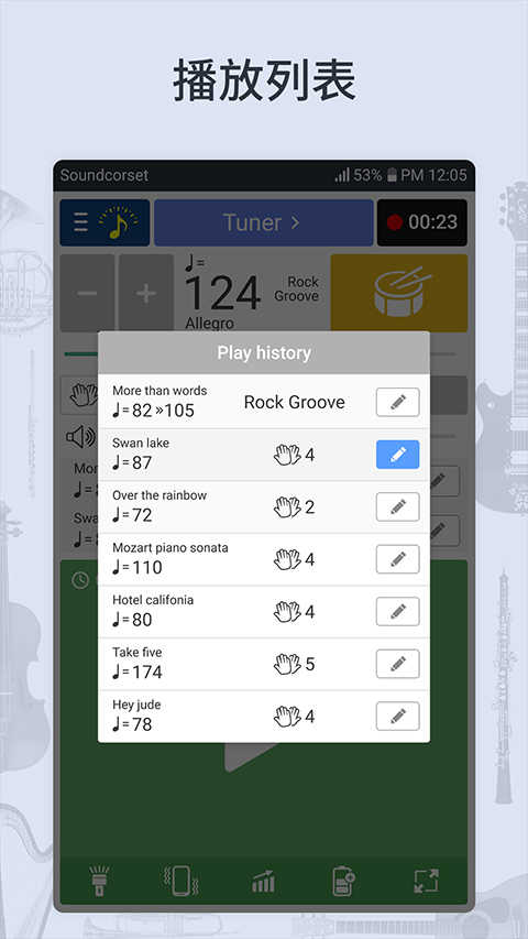 调音器和节拍器旧版本是一款集专业调音、精准节拍与便捷录音于一体的多功能音乐辅助工具。无需复杂设置,打开即用,无论是吉他、钢琴、单簧管还是人声练习,它都能为各类乐器演奏者和音乐学习者提供稳定、高效的支持,是练琴路上不可或缺的得力助手。