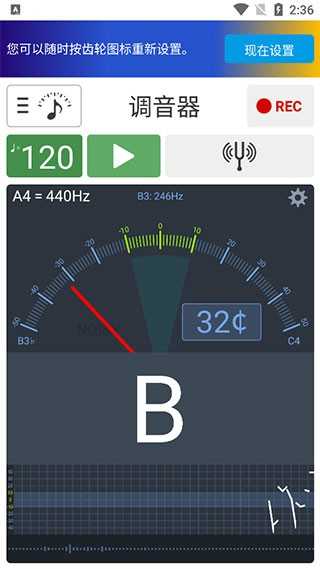 启动应用后,默认进入节拍器界面。只需点击顶部调音器”字样,即可无缝切换至调音模式,操作直观流畅,新手也能迅速上手。