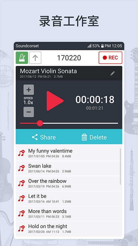 集成录音回放功能,完整记录练习过程,便于反复聆听、分析与改进,加速提升演奏技巧。