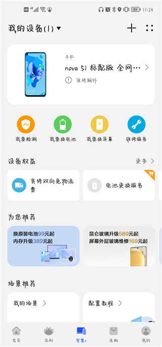 通过我的设备”功能,你可以集中管理已绑定的华为产品,一键申请电池更换、屏幕维修等官方售后服务,省心又高效。