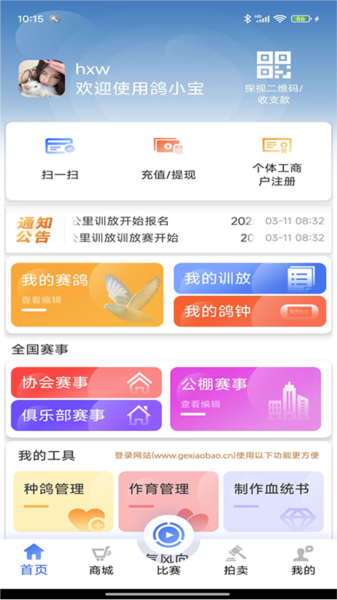 鸽小宝app是一款专为赛鸽爱好者打造的一站式智能服务平台。无论你是资深鸽友还是刚入门的新手,都能在这里轻松获取最新赛事资讯、高效管理赛鸽信息,并一键购买专业鸽粮、鸽药、鸽具等高品质产品。从赛事报名到成绩追踪,从设备管理到限时抢购,鸽小宝让养鸽、训鸽、参赛变得更简单、更高效、更专业。