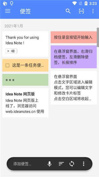 Idea Note是一款基于锤子闪念胶囊概念开发的语音便签软件,虽然只能实现锤子胶囊90%的功能,但在使用效率和用户体验上更好。在软件中完美还原闪念胶囊的信息收集和信息整理体验,支持语音和文本两种快速记录方式,帮助用户随时随地将需要记录的内容进行分类和管理。采用扁平化的管理方式,将所有记录的内容以更直观的方式呈现出来。