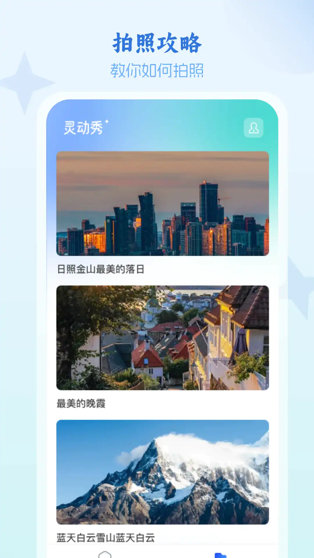 灵动秀是一款集摄影创作、灵感激发与社区互动于一体的手机应用。无论你是随手记录生活的日常拍客,还是追求光影艺术的专业创作者,这里都能为你提供从拍摄辅助、技巧学习到作品展示的完整创作闭环。精致UI设计搭配流畅操作体验,让每一次快门都更富灵感,每一帧画面都值得分享。