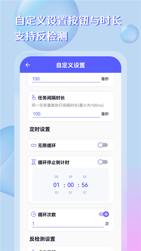 在任务设置界面中,调整点击间隔、任务停止时间等参数。