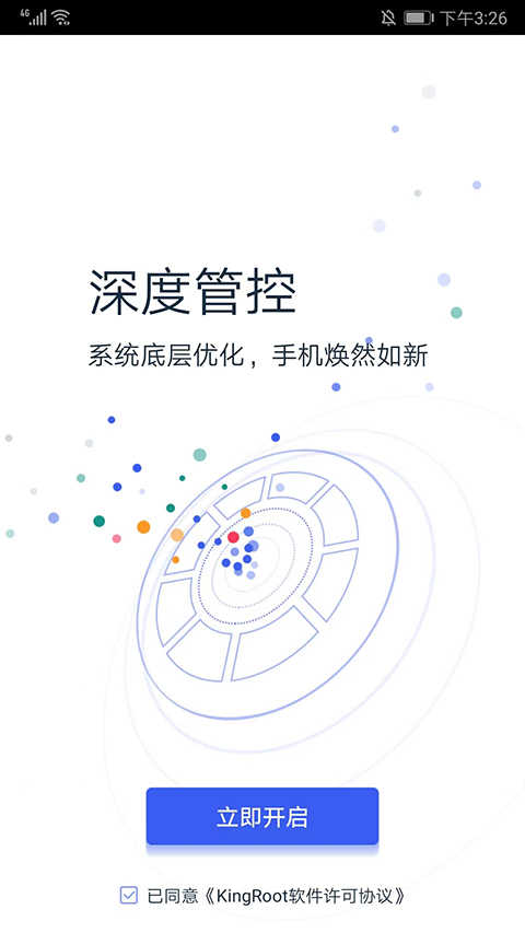 1、启动Kingroot最新版后进入主界面,点击底部【立即开启】按钮开始操作。