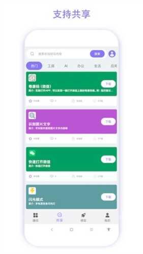 捷径助手app是一款由惠州市小奕智能科技有限公司开发的在线编程应用,即使用户没有任何编程基础,也能轻松完成简单的编程操作。例如:一键拨打电话、快速打开指定网页等。用户可以根据自己的需求自由组合各种动作和实用工具,甚至录制操作过程,系统会自动保存为可执行程序,使用时只需简单触发,后续一系列操作将自动按设定执行。