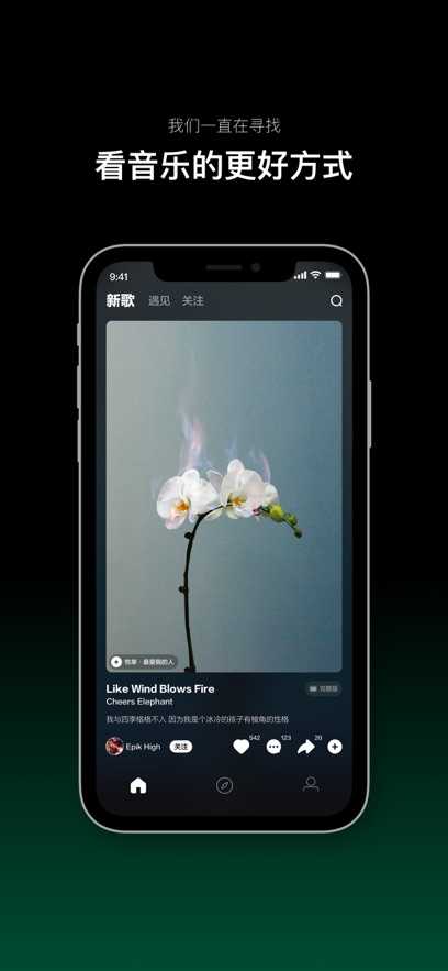 3.传统的播放器结构布局被打破,新的布局体验让您可以更自由地找到想要听的歌曲。