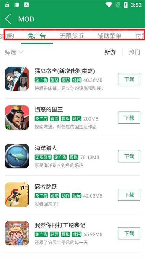 3、用户可以选择免内购、免广告、无限货币、辅助菜单等功能的修改版游戏。