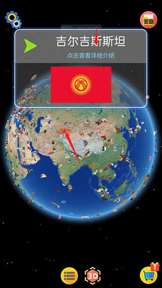 1、进入软件后点击国家或者标记就可以查看详细介绍、滑动屏幕就可以转动地球、收缩和拉伸就可以缩放地球;
