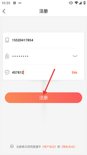 3、输入验证码,点击【注册】按钮,完成账号注册。