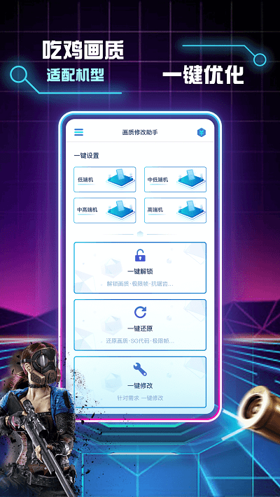 3、吃鸡画质,适配机型,一键优化,让用户都可以随时去进行画质的修改操作;