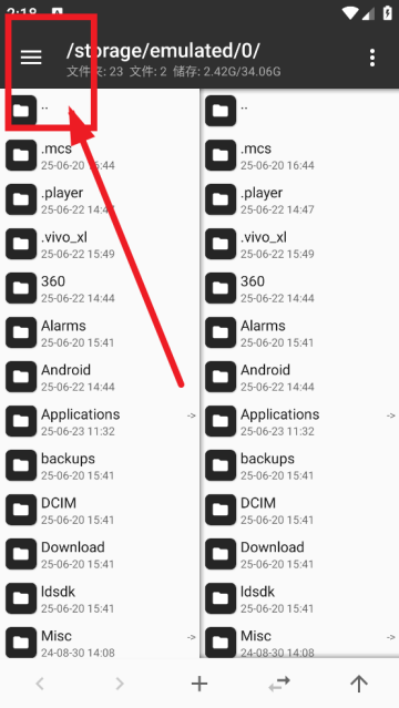 1、进入这个界面可以看到很多文件,点击左上角三条杠。