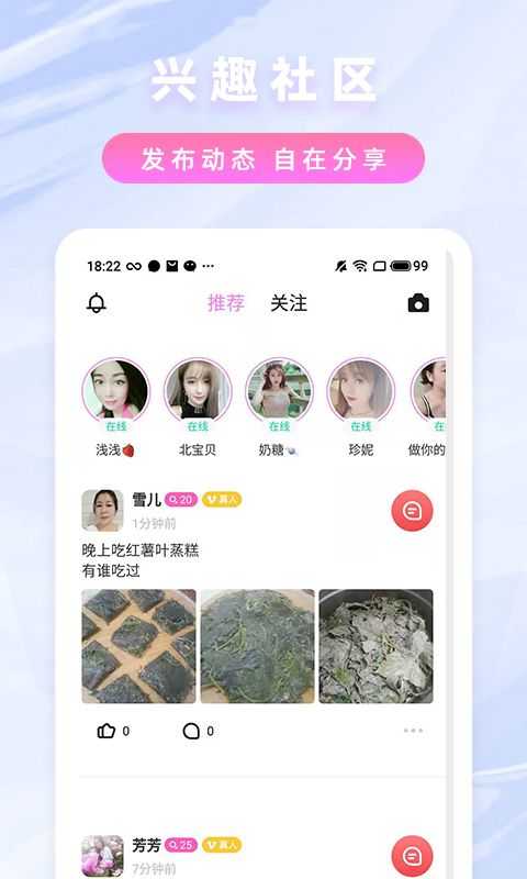 1、你可以随时分享自己的心情故事、热爱的游戏以及亲手制作的美食内容
