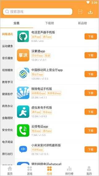 这里提供了很多类型的软件,如网络通讯、运动健身、音乐播放、教育学习等等。