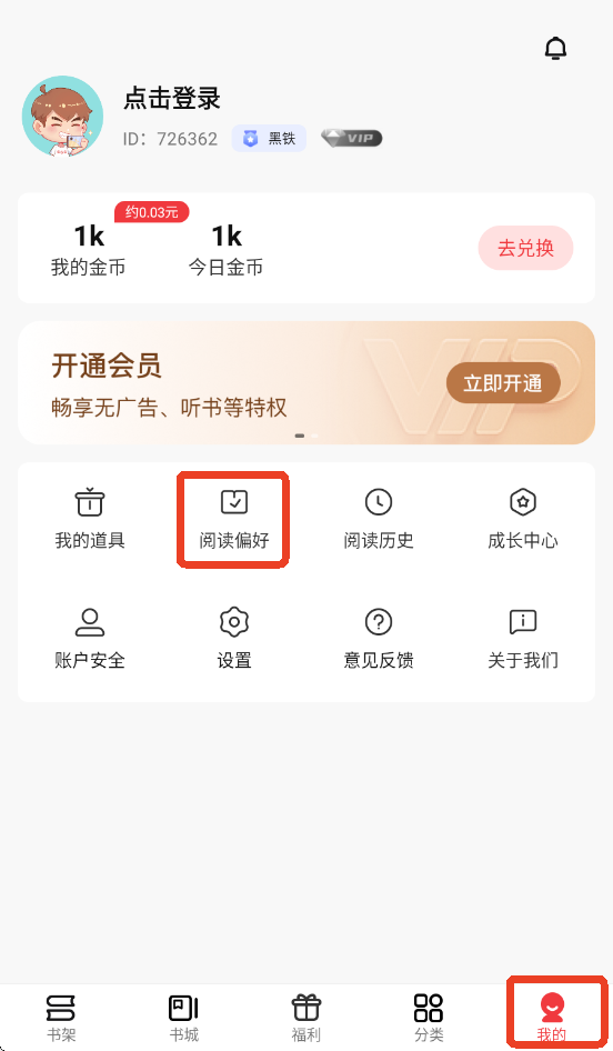 2、在火文小说内读者可以自行更改偏好设置,点击我的——阅读偏好。