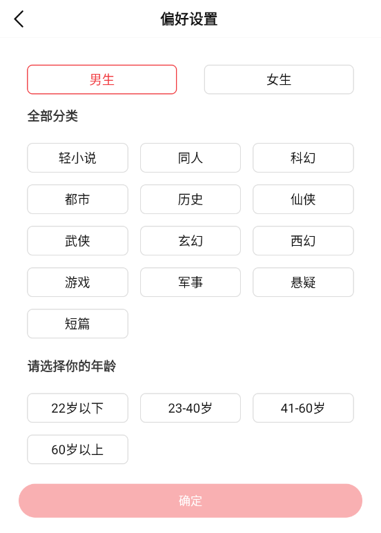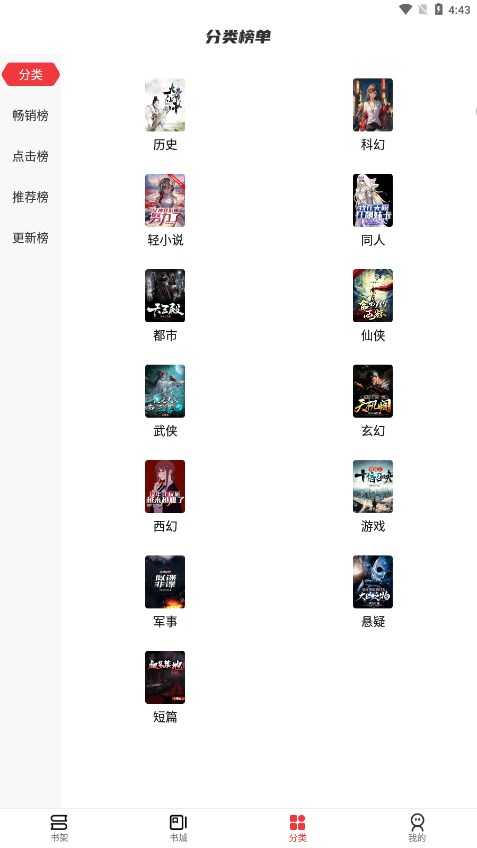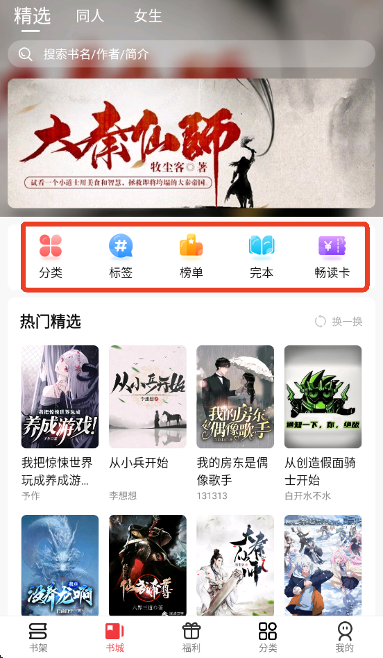 1、读者可以从这四种类型里寻找想要的小说,分类、标签、榜单和完本。