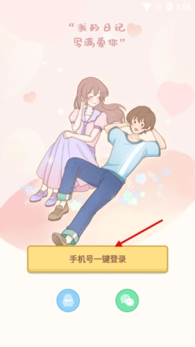 1、首先用户需要下载好爱情日记”APP,打开应用后选择自己的登录方式,可以用手机号、QQ、三种常用方式登录。