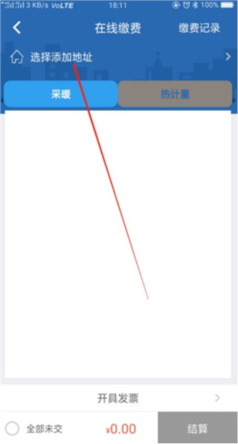 3、选择请添加地址”添加您的用热地址,随即显示出您的对应地址年份供暖费缴费记录,用户如果要进行在线缴费,须首先绑定地址;