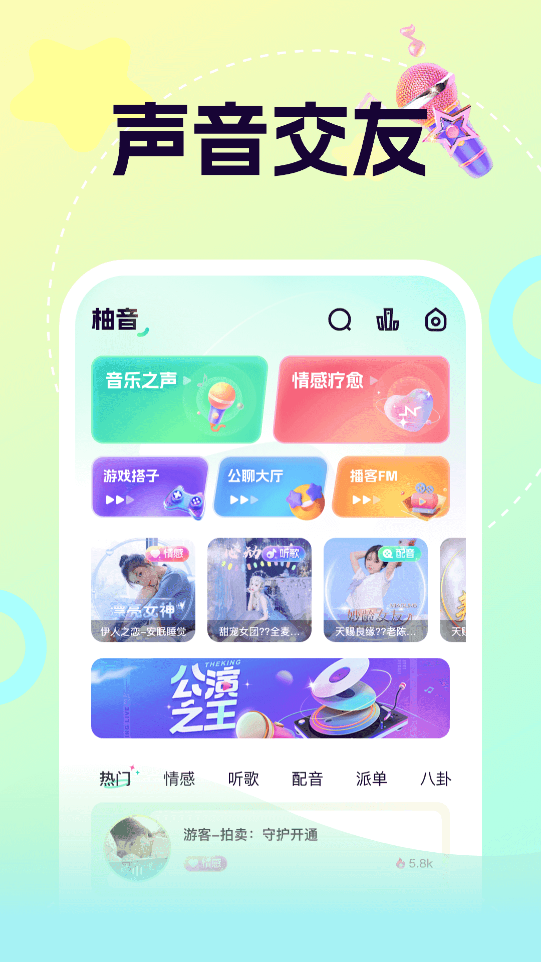 柚音提供实时连麦、开黑组队等互动功能,旨在让您轻松找到志同道合的搭子,主要功能包括实时连麦、开黑组队、创建或加入语音聊天房间等,旨在帮助用户找到志同道合的伙伴,感兴趣的朋友不要错过了。