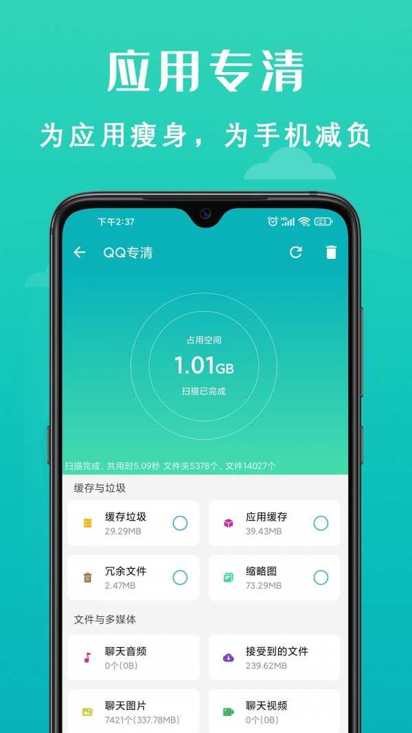 2. 强大的清理功能,能够彻底清理手机中的无用文件和缓存垃圾。
