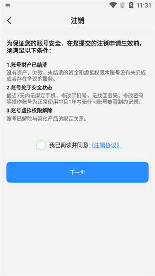4、找到账号注销,点击账号注销;