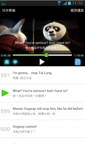 2、支持字幕控制功能,帮助用户更直观地理解内容,还可循环播放难懂单词,加深记忆。