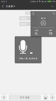 3、准备好后点击播放按钮,当倒计时接近1秒时(倒计时时间可在功能设置”中自定义),长按按住说话”按钮,使播放与录音同步进行,从而将变声内容录入语音中,播放完毕后松手即可发送。