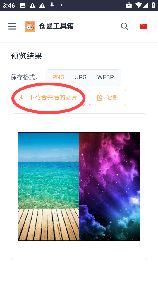 3、确认无误后,点击下载合并后的图片”按钮完成操作。
