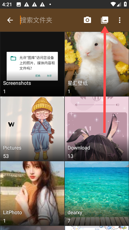 2、点击指定图标,设备中的所有图片将被快速加载并显示。