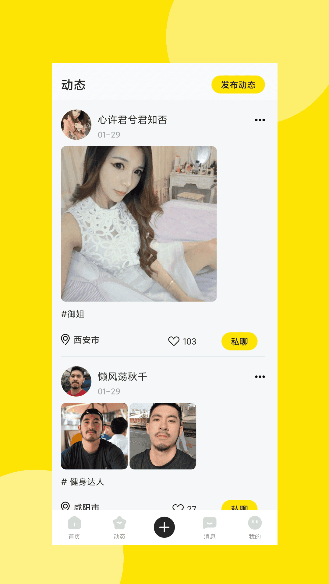 3、设有动态分享社区,展示自我风采,表达真实想法