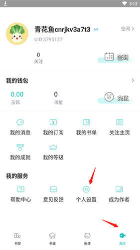 1、您需要进到长佩阅读无限阅读币版,在我的”界面的我的服务”下方选择成为作者”