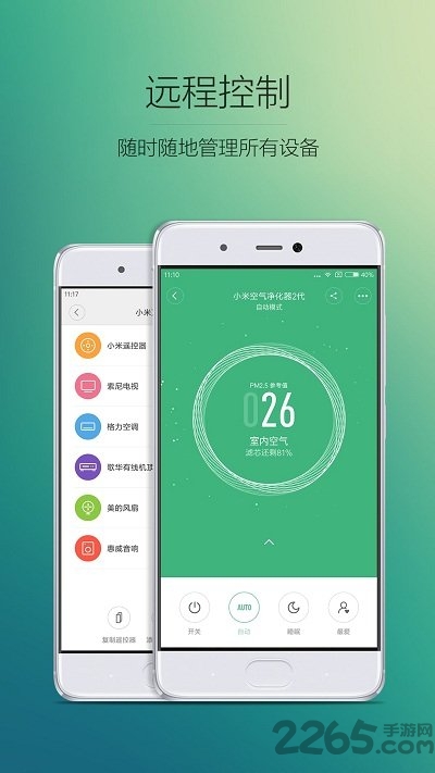 3、远程控制,设备添加成功后,在首页点击对应图标,即可远程开关空调、净化器等,还能调节模式和定时,出门也能随时查看状态。