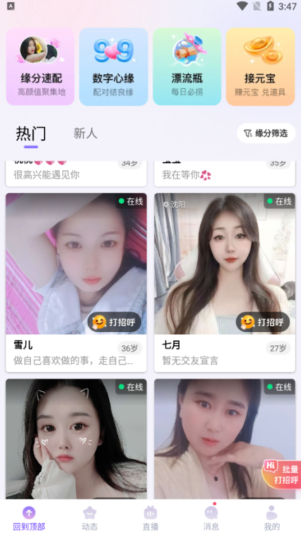 2、在首页你就可以认识超多漂亮的小姐姐了,各种不同的类型等你来进行选择