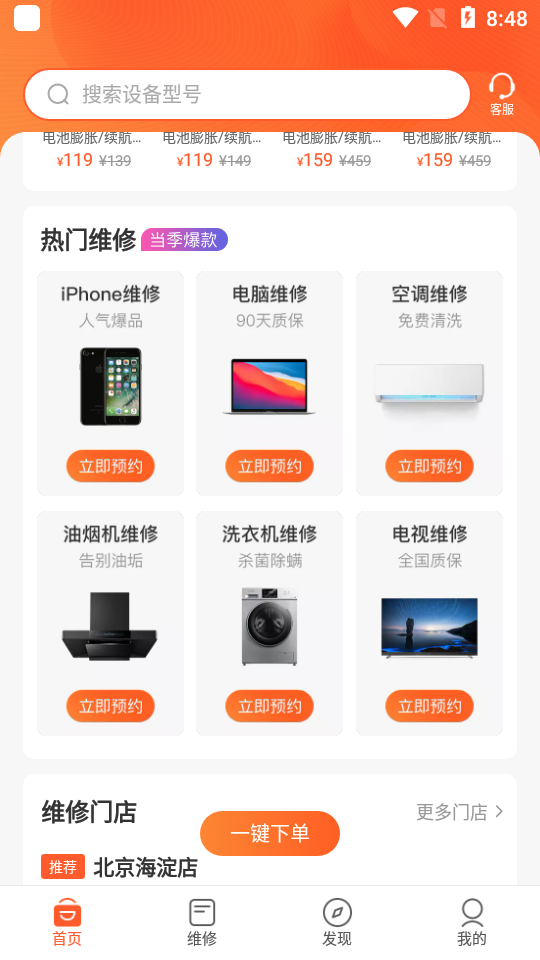 专门用来修手机修电脑的平台,我们如果有这些这些问题的话就可以在上面下单了,还支持上门维修的,而且新用户上线还能领取超多的优惠券,非常划算。