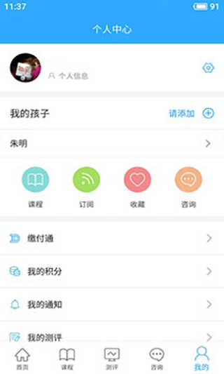 2、进入我的,进行注册登录,添加孩子信息。