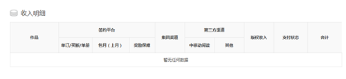 2、稿酬收入包含奖励保障、版权收益、打赏明细等模块;