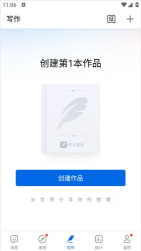 1、在写作”页面点击创建作品”按钮;