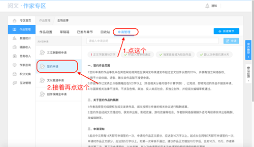 当作品字数达到五万以上,并自认质量达标时,可主动提交签约申请。审核通过后,系统会通知结果。