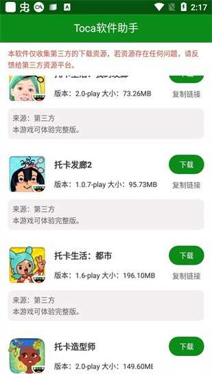 托卡软件助手是一款非常有趣的游戏辅助工具软件。是专为托卡系列游戏所打造的下载辅助工具,大家可以通过它获得所有最新版的托卡系列游戏,可以直接通过软件查看详细的破解内容,更多辅助功能将会在后续更新中陆续的加上.