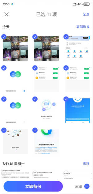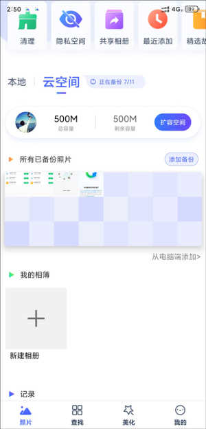 6、再点击【云】图标进行授权登录后,照片就备份上传成功了。