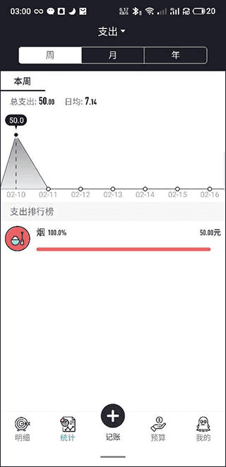智能分析:以饼图、线图等多种形式展示数据,清楚掌握每周、每月的收支比例