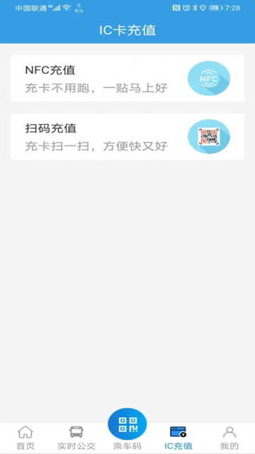 2、打开株洲通APP,进入IC卡充值页面,选择扫码充值选项。