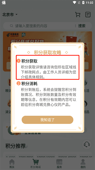 1、启动邮生活后进入积分商城页面