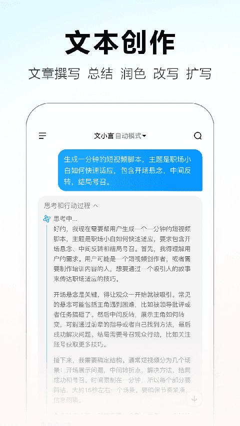 * 随身文创专家:无论是撰写特定主题的文案、周报、月报,还是餐厅点评、vlog脚本甚至节日祝福语,只需表达需求,即可获取源源不断的创意灵感。