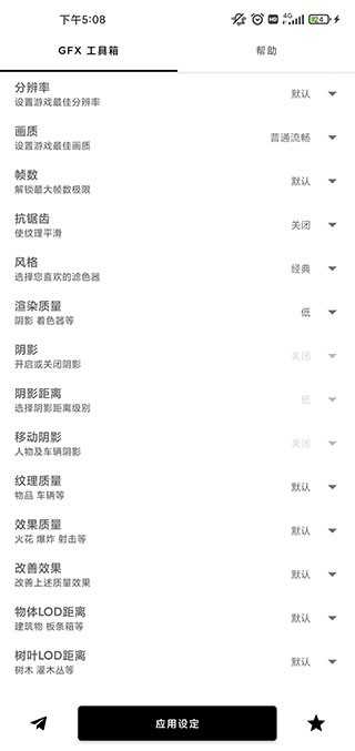 初次接触GFX工具箱,我就被它丰富而强大的功能所吸引。作为一名经常测试各种游戏优化工具的玩家,我发现这款软件不仅提供了分辨率调节、帧率控制、画质增强等基础功能,还支持更多高级定制选项,比如阴影开关、抗锯齿设置以及HDR图形解锁等。通过这些调整,我可以根据设备性能进行精细化调试,从而获得更流畅、更清晰的游戏画面。