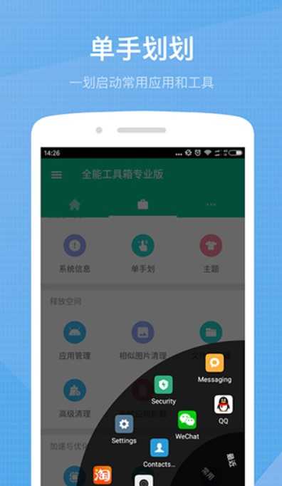 全能工具箱专业版是一款功能强大的手机系统管理软件,界面设计简洁大方,操作体验流畅直观。它支持一键优化系统性能,提升运行速度,同时具备垃圾文件清理和SD卡与应用程序的高效管理能力。软件还集成了安装包清理、数据备份还原、桌面快捷方式设置、启动项自定义等功能,并能实时显示手机状态,全面满足用户对设备管理的需求。
